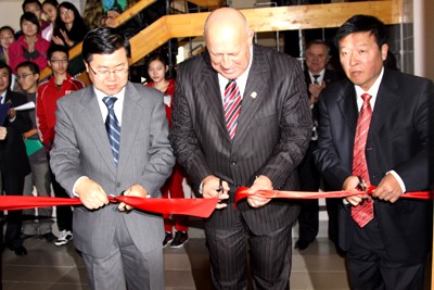 图 孙立杰、张少杰、舒梅科为孔子学院剪彩